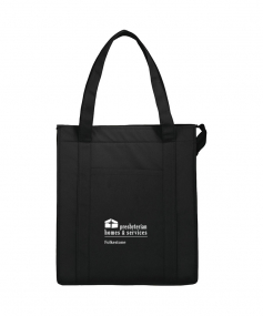 The Hercules Insulated Grocery Tote is as strong as its name suggests and offers a reusable alternative to plastic bags. Its interior is fully insulated with a heat-sealed, water-resistant lining to help protect your groceries and personal items. The Hercules features a zippered main compartment, a front open pocket measuring 9.7'' H x 6.5'' W, and double handles measuring 23''. This tote is the same was previously Leed's 2150-46, Big Grocery Insulated Non-Woven Tote.