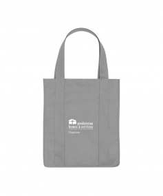 Made Of 80 Gram Non-Woven, Coated Water-Resistant Polypropylene. Great For Grocery Stores, Markets, Book Stores, Etc. 10" Gusset With Matching Covered Bottom Insert. Reusable. 20" Handles. Spot Clean/Air Dry. Complies with Prop 65. 13" W x 15" H x 10" D