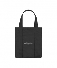 Made Of 80 Gram Non-Woven, Coated Water-Resistant Polypropylene. Great For Grocery Stores, Markets, Book Stores, Etc. 10" Gusset With Matching Covered Bottom Insert. Reusable. 20" Handles. Spot Clean/Air Dry. Complies with Prop 65. 13" W x 15" H x 10" D