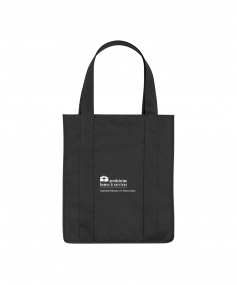 Made Of 80 Gram Non-Woven, Coated Water-Resistant Polypropylene. Great For Grocery Stores, Markets, Book Stores, Etc. 10" Gusset With Matching Covered Bottom Insert. Reusable. 20" Handles. Spot Clean/Air Dry. Complies with Prop 65. 13" W x 15" H x 10" D