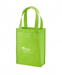 Constructed of 80 GSM non-woven polypropylene. Easily fits standard magazines & notebook paper. Reinforced 18" handles. 4 1/2" gusset. Complies with Prop 65. 12" H x 9" W x 4 1/2" D