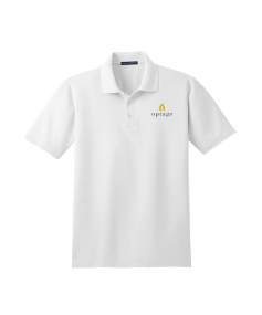 5.6-ounce, 60/40 cotton/poly. Includes double-needle stitching throughout. Flat knit collar and 3-button placket with dyed-to-match buttons. Features open hem sleeves and side vents.